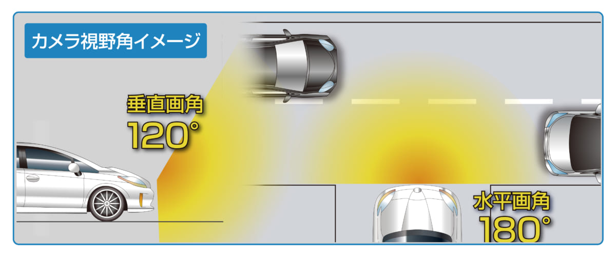 車両の左右状況をシッカリと映し出す。万一、歩道を走行してきた自転車がいても早期に発見できるので、見通しの悪い路地から出るときには便利。安全運転支援にもなる。