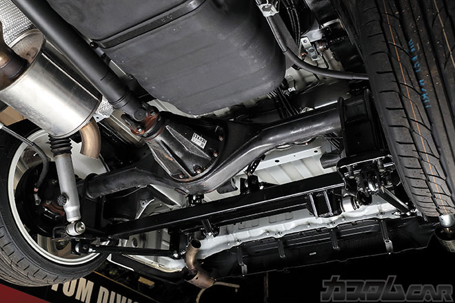 車高調は全長調整機能付きで、なおかつ36段階の減衰力調整機能付き。乗り心地を任意で変更できることもポイントだ。