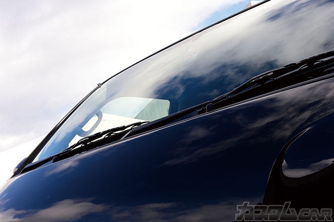 今回の洗車作業に協力してくれたのは、本誌やSBMでもおなじみの“カーハウスZERO”。デモカーのハイエースは艶っぽいブラックボディに一段と磨きがかかり、ボディにお空が反射するほどピカピカにクリーンアップ。ケミカル剤ってどれも一緒でしょとお考えのそこのアナタ、まずは使って体感してみてちょーだい!