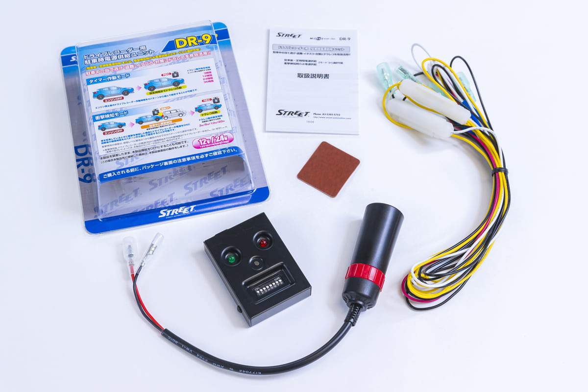 そんな注目の機能を既存のドライブレコーダーに追加できるのが、「ストリート」がリリースするミスター・プラス「DR-9」。これはドライブレコーダー用電源供給ユニットで、駐車後の一定時間または衝撃を受けたときに録画できるようになる。