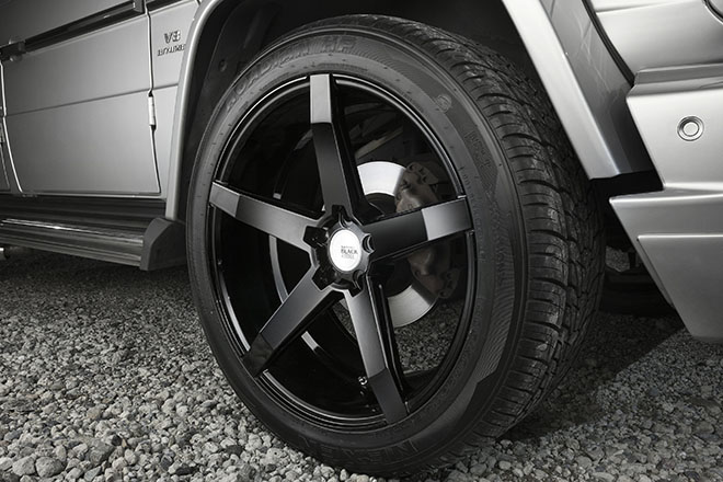 加えて、絶妙な車高もこのGクラスをセンス良くまとめているポイントだ。オフィス・ケイオリジナルのローダウンサスペンションKITは、いわゆるツライチではなく、上品なSUVらしさを残す絶妙な高さを与えたもの。