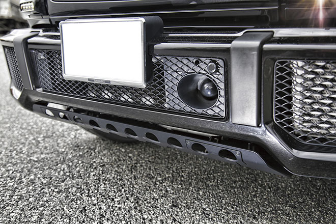 G63仕様としながら、さらに各部をブラックに塗装するといったカスタマイズも実施している。グリルの奥に位置するクーラーコンデンサーもG63と同じくブラックへ塗装済み。