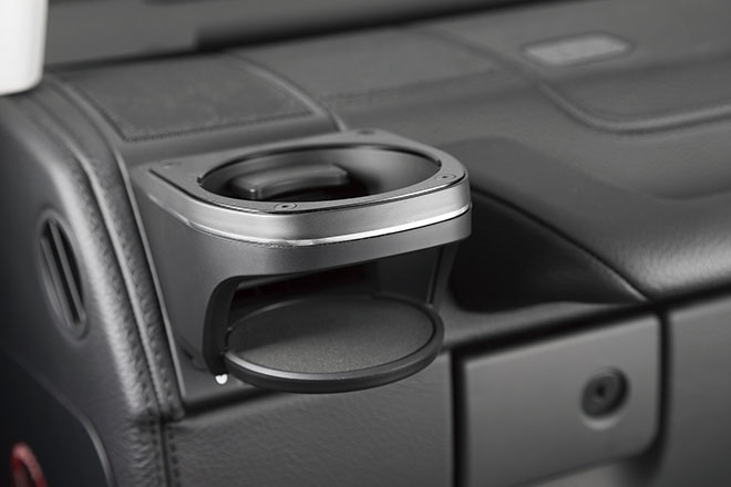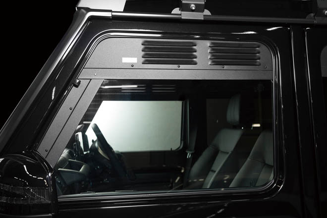 ヘッドライトカバー、グリル、オーバーフェンダーなどはグレーカラーに変更し、あえて樹脂感を強調したものとしている。サイドステップやエンブレム類はブラックペイントを施している。室内にはヒット商品となっている、Gクラス専用設計のドリンクホルダーを装着。2001年以降のGクラスに装着可能で、使いやすくファッション性も高いアイテムである。足回りはFoxの別体タンク式ショックアブソーバー、GFG4cmリフトアップスプリング、GFG強化ステアリングシャフトが組み込まれている。