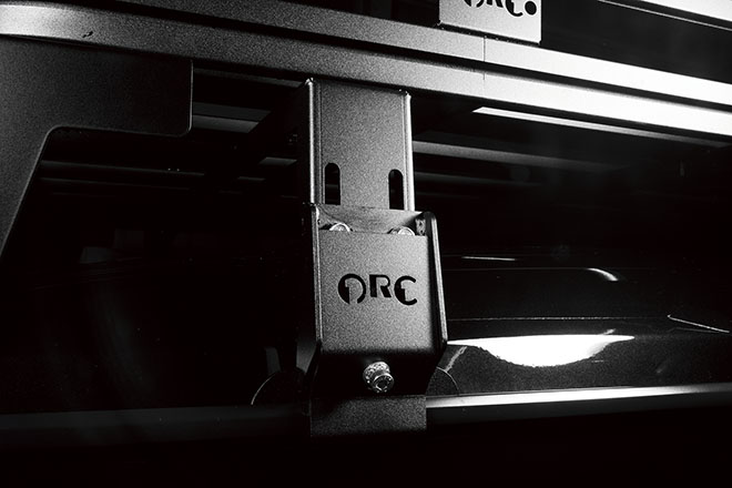 オフロードパーツブランドの「GFG」と「ORC」のパーツを中心にセットされている。ルーフラックやリヤラダーは堅牢なORC を装着。金属製でサイド面を頑丈に保護するドアバイザーもORCパーツだ。タイヤはNITTOのTrail Grappler MT。この大径タイヤとリフトアップサスの組み合わせで、約18cmの車高アップとなっている。