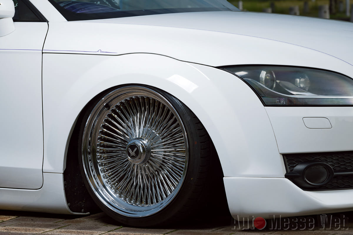 「このTTは4年前に手に入れました。それまでは自分のクルマって持っていなかったんです。でも、昔からアウディは好きで、特にTTに乗りたいなって……。ずっとスタンス系にイジッてましたが、このスタイルを始めたのは去年からなんです」。
