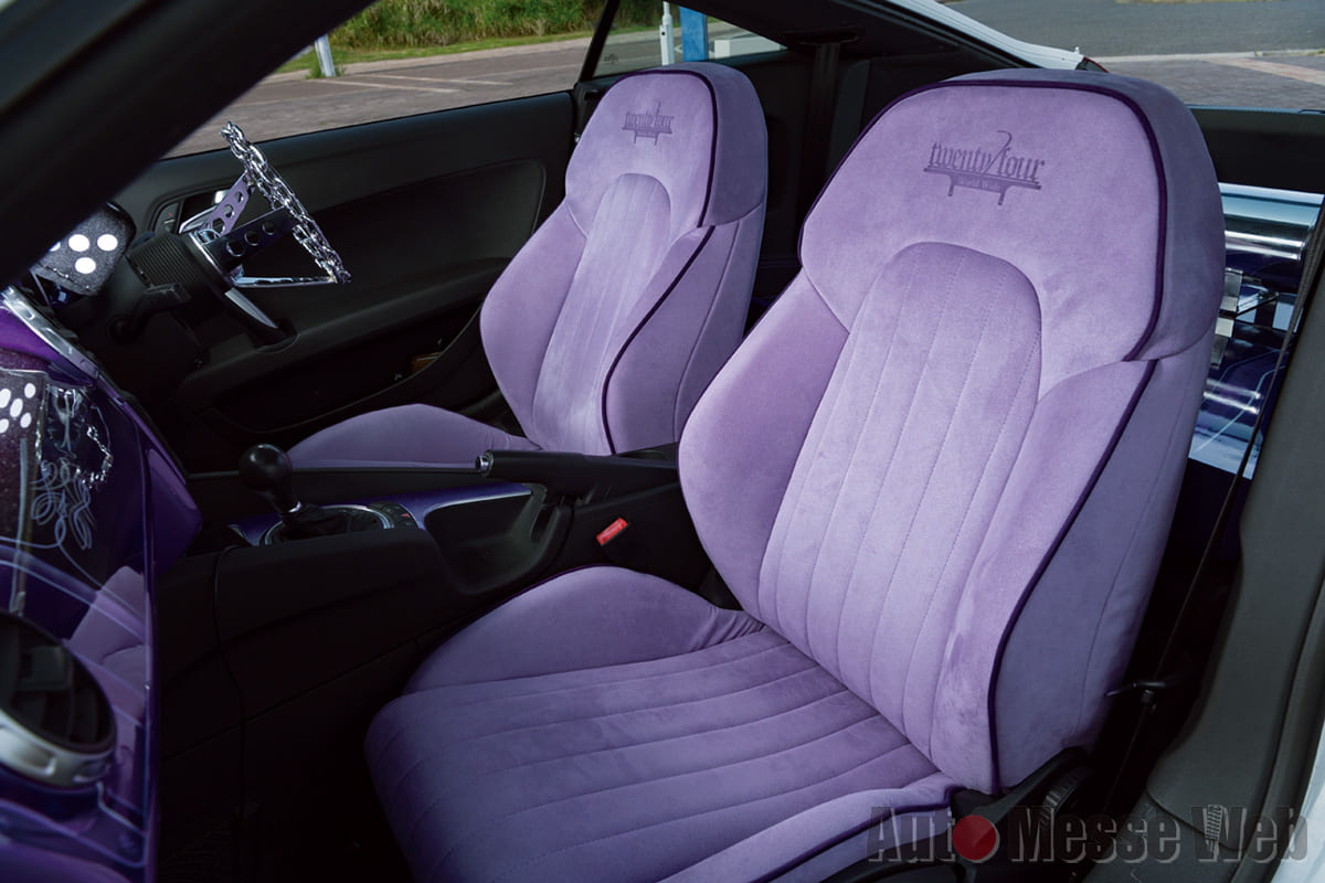そして、もうひとつの見どころがパープルが際立つインテリアで、パープルを使ってカラーコーディネイトされ、2シーターとしてメイクされている。
