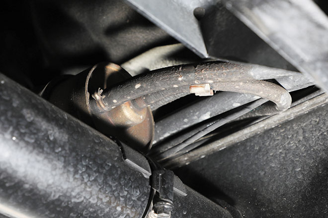 パワステフルードの漏れは、ピットマンアームとの接続部に付くシールの劣化が原因で起こることが多い。このほか、ラジエターの後ろに付く、パワステフルードのリザーブタンクの劣化から漏れが生じることもある。