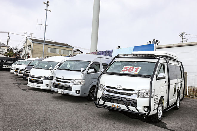 東海地区最大級の1000坪という広大な敷地には、70台以上のハイエースを展示。新車や中古車はもちろん、同店の数々のデモカーも展示されており、自分にピッタリな1台を、実車を見比べながら選ぶことができる。