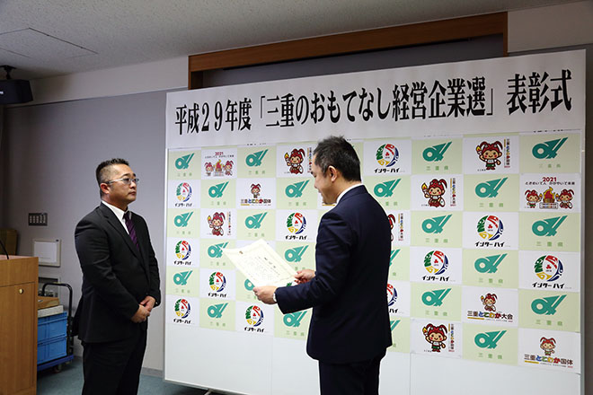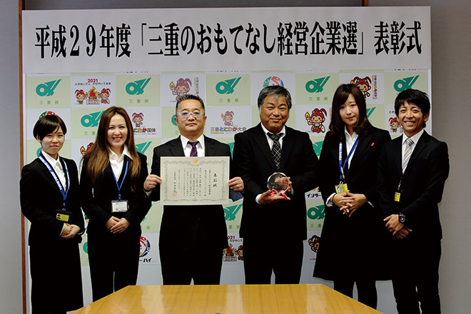 「三重のおもてなし経営企業選」を受賞