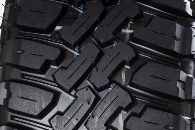 実は既存のアフターマーケット用M/Tタイヤでは若干ながらフェンダーからハミ出てしまう可能性があることがその理由。しかも693mmというタイヤの外径サイズは純正とほぼ同一であることも、このサイズを指定した大きなポイントだ。