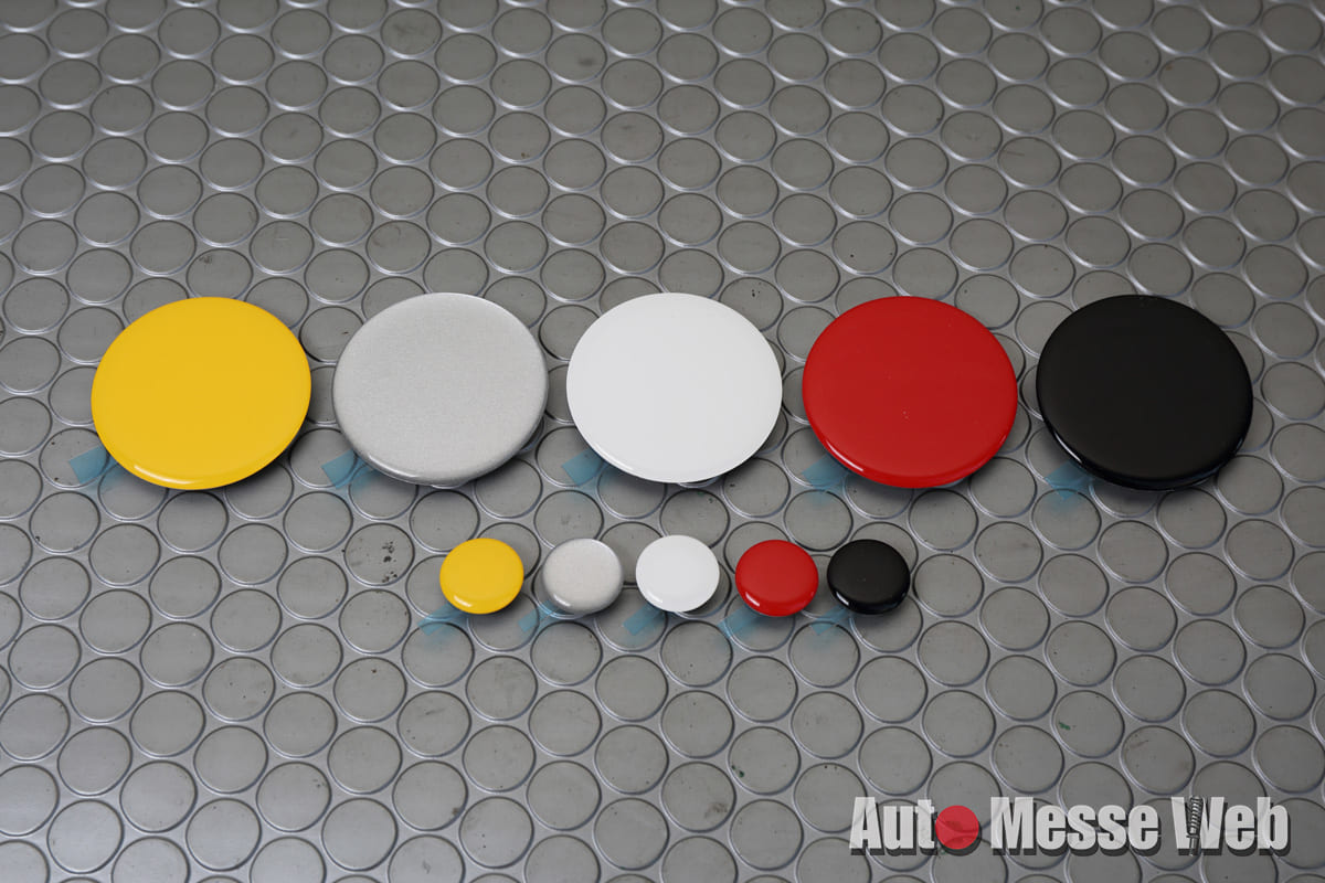 リヤウインドウウォッシャーノズル用のカバーは、外径20mm、スポンジの径は10mm。こちらもワイパーホールカバーと同じくホワイト、シルバー、ブラック、レッド、イエローの5色を用意する。