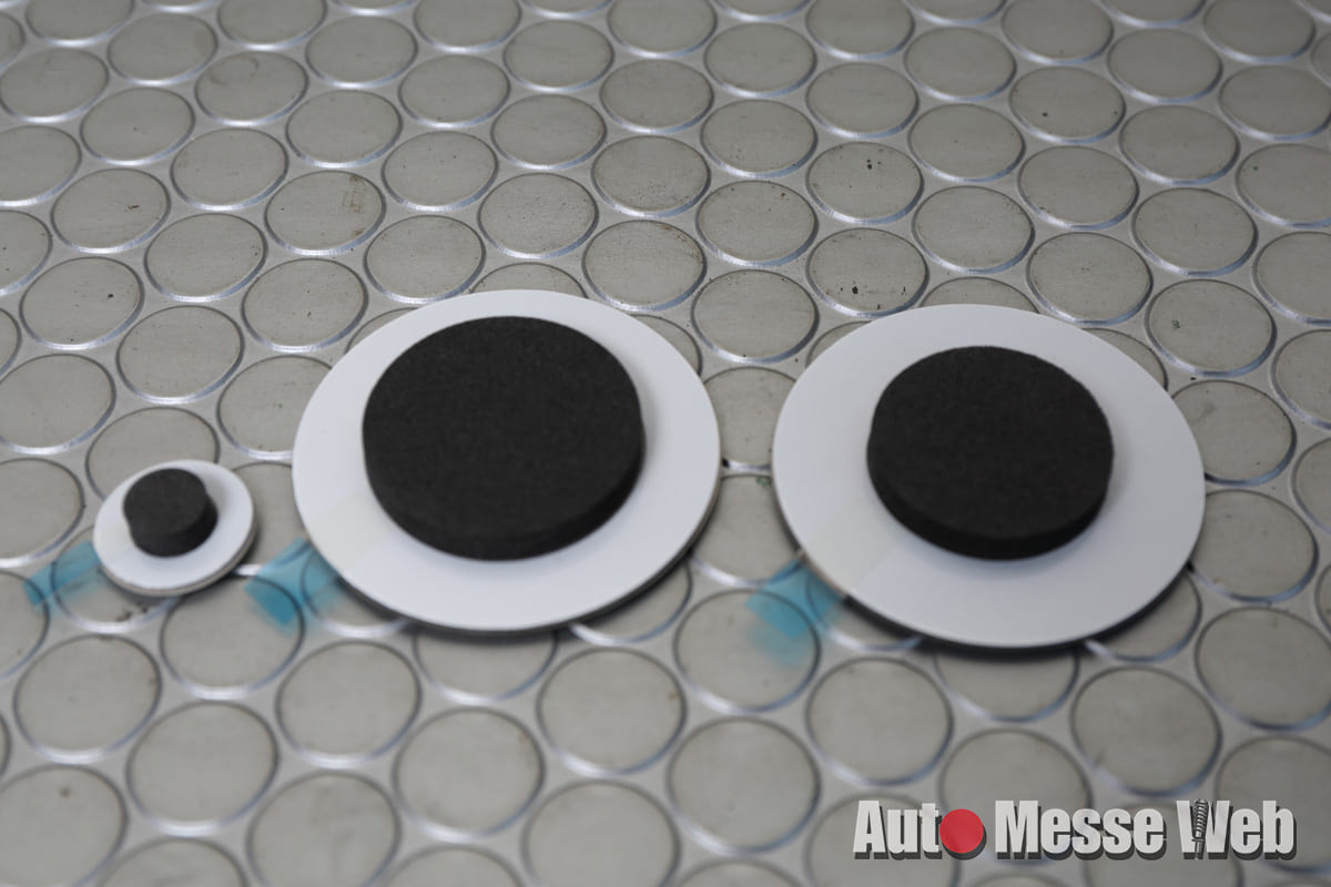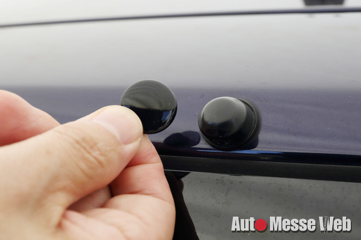 なお、スポンジは30mm(一般的な日産車用)と35mm(一般的なトヨタ車用)のほか、今回のサンプルカーのカローラフィールダーのように穴の直径が細く特殊な車種用としてスポンジレス仕様も用意している。