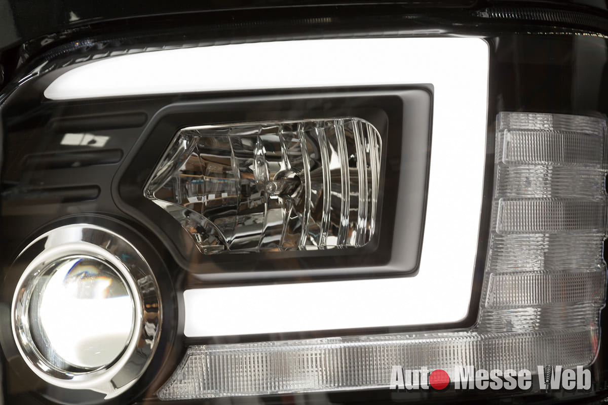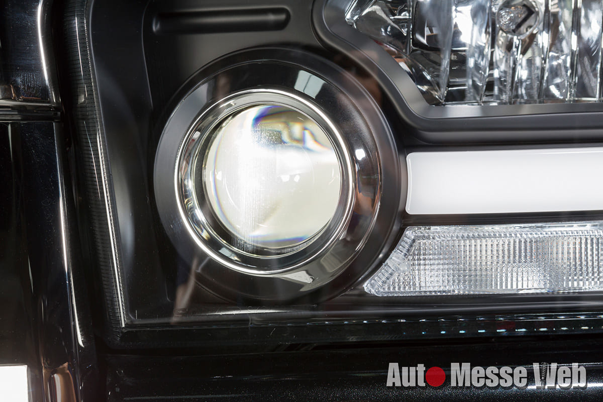 ロービーム部分はLEDプロジェクター式となり、ハロゲン車の純正よりも明るさを増すことが可能。消灯時の見栄えもスタイリッシュである。