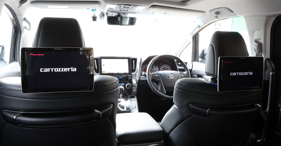 スーパーカーニバルには、発売されたばかりのサイバーナビ(車種専用10インチモニターモデル)や、フリップダウンモニターを搭載したトヨタ・アルファードを展示。