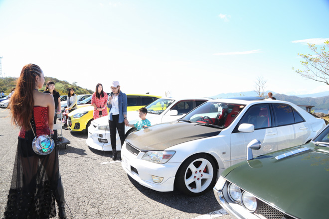 それに加え、目の前には富士山、下を見下ろせば芦ノ湖、という絶好のロケーションの中、今年も『トーキョーガールズカーコレクション』は主催者のお二人『NAOさん』と『あぐさん』による「スタート〜!」の合図で始まった。