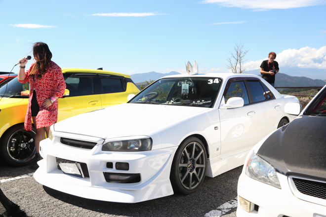 開会式のあとはすぐにエントリーによる自己紹介タイム。みんな思い思いに自分の車のカスタム箇所やエピソードなどを語ってくれた。