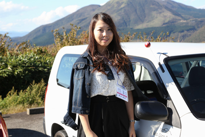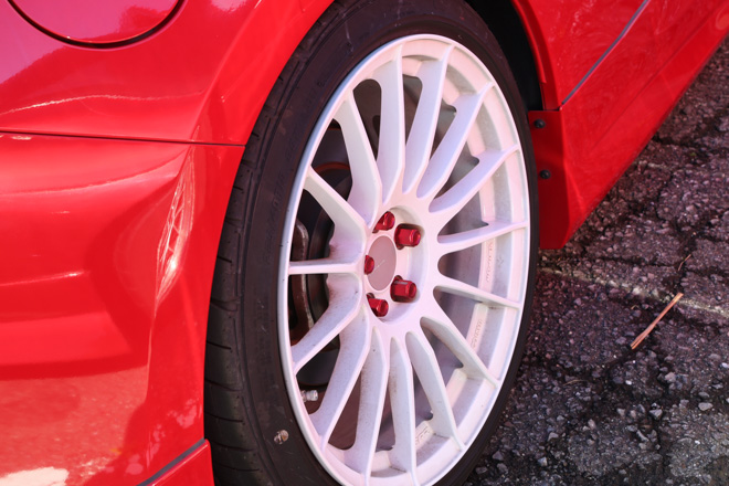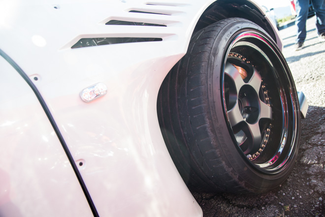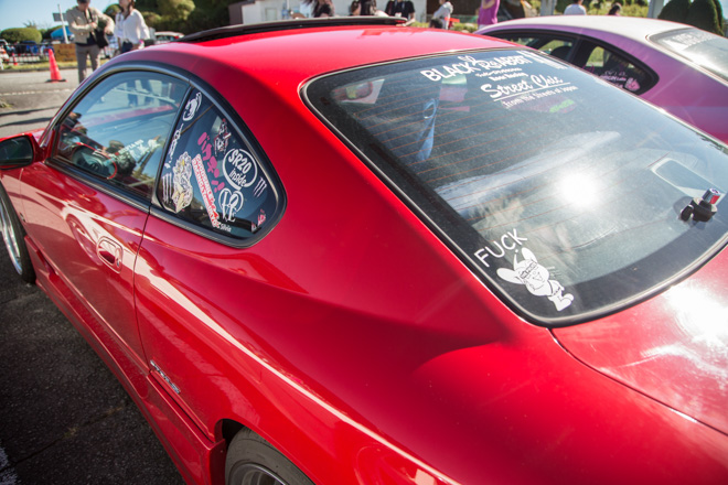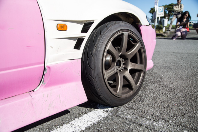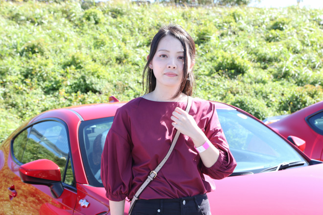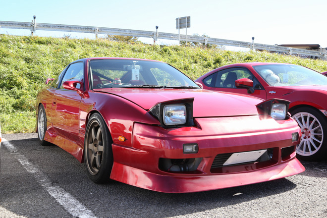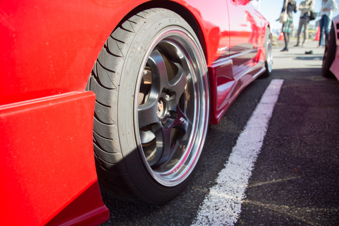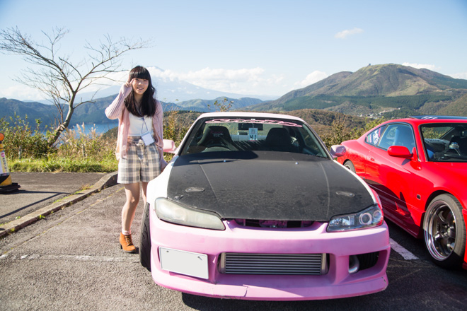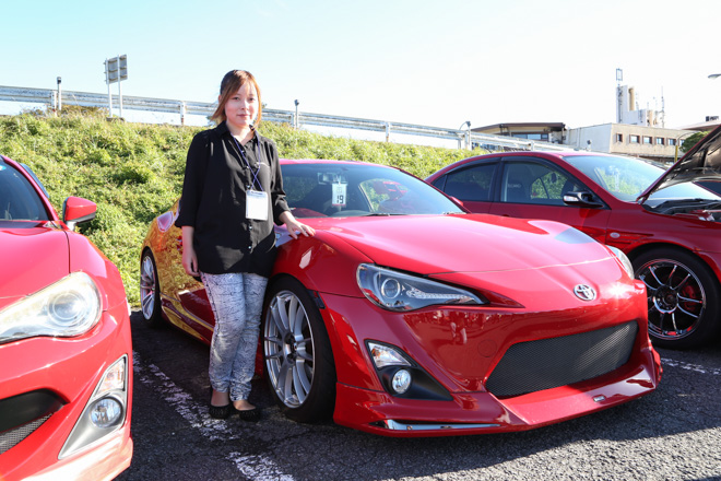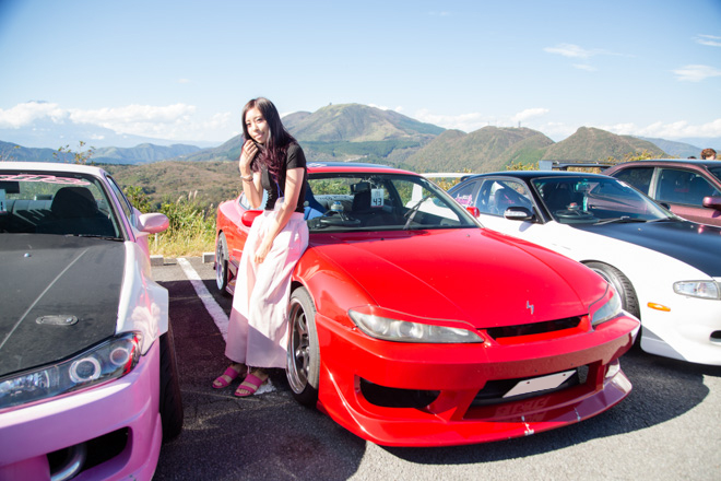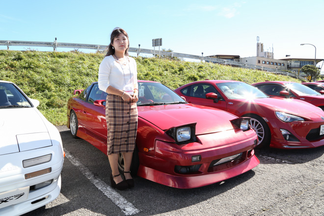 愛知県から参加のあやころさん。真っ赤なS15シルビアにWORK製マイスターでレーシーな雰囲気が存分に伝わってくる。「クルマと撮っていただいてありがとうございます。」と礼儀正しい姿はスポーツカー女子の鏡。