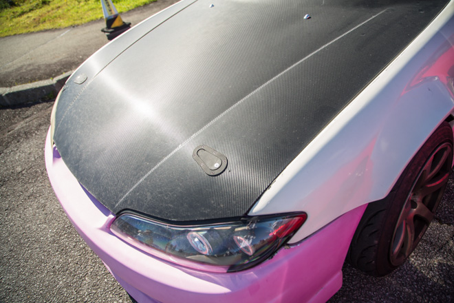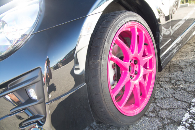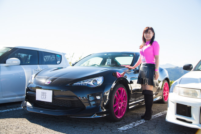 ワークエモーションやカーボンボンネットとスポーティでありながらも、ピンクのボディで女性らしさも融合。イベントを終始楽しんでいた様子のおうかまんさんはファッションも愛車によく似合っていました♩