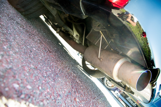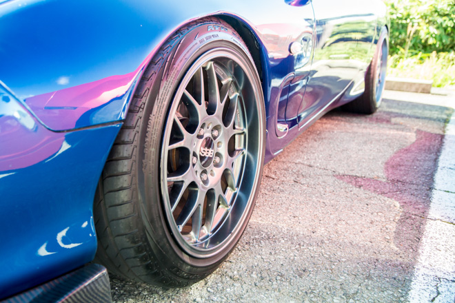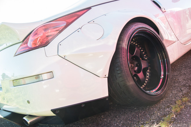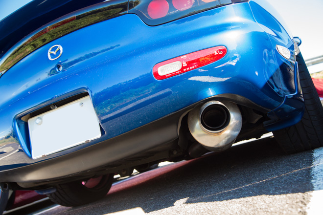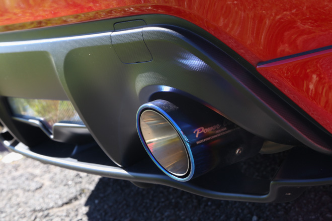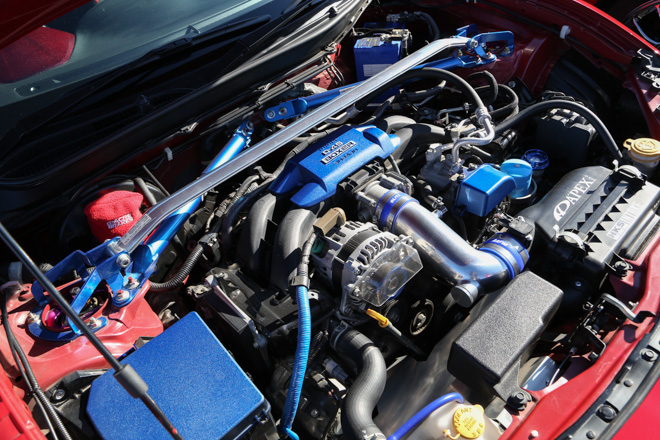 「白いホイールとマフラーがポイント」というようにENKEIホイールがよく似合う。パワークラフト製マフラーとスバル純正ディフューザーもそのルックスに一役買っている。たまにサーキットへ走りに行くようで、ブリッド車高調をはじめ、本格的なりささん。