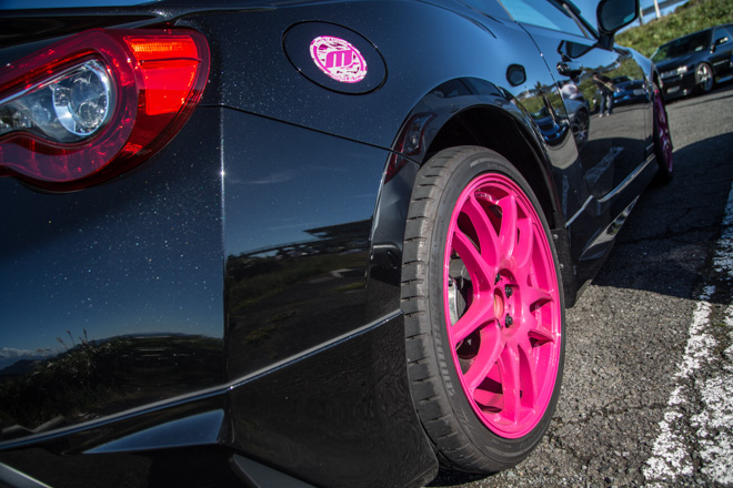 ブラックボディにピンクのホイール、エンブレムなど、テーマ性がある一台。オーナーのみぽりん86さんとのファッションコーディネイトにも注目が♩ 昼間で見えませんが汗 カーテシランプ施工で夜のドライブも楽しくなりそう。