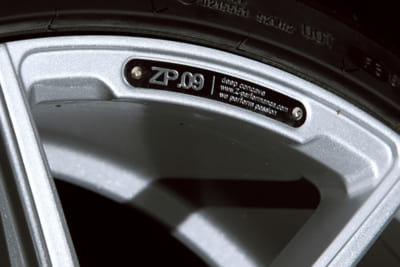 ボルトホールを中心にスポークの側面を深く抉り込んだことで、躍動感はリムオーバーでデザインされた細身のスポークとディープコンケーブの相乗効果で、20インチという実際の口径以上の存在感を獲得している。また薄いリムにはモデル名を彫り込んだプレートが施されるなど、凝ったディテールもZパフォーマンスの特徴でオーナーの所有欲を満たしてくれることだろう。