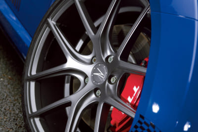 ボルトホールを中心にスポークの側面を深く抉り込んだことで、躍動感はリムオーバーでデザインされた細身のスポークとディープコンケーブの相乗効果で、20インチという実際の口径以上の存在感を獲得している。また薄いリムにはモデル名を彫り込んだプレートが施されるなど、凝ったディテールもZパフォーマンスの特徴でオーナーの所有欲を満たしてくれることだろう。