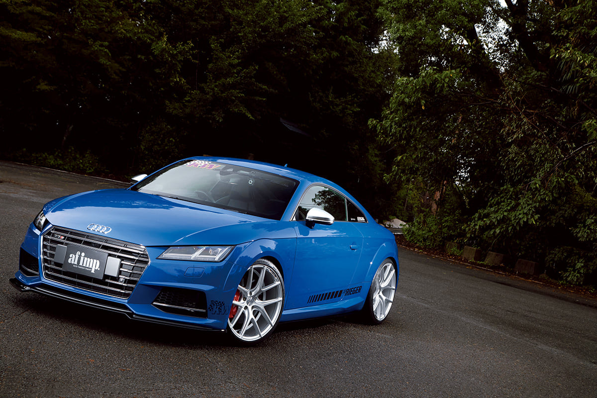 今回アウディTTSに装着したのは『ZP.09』。5つの交点をもつラフメッシュという、今流行りのデザインだが、交点をグッとセンターに引き寄せることで、強い立体感を実現。