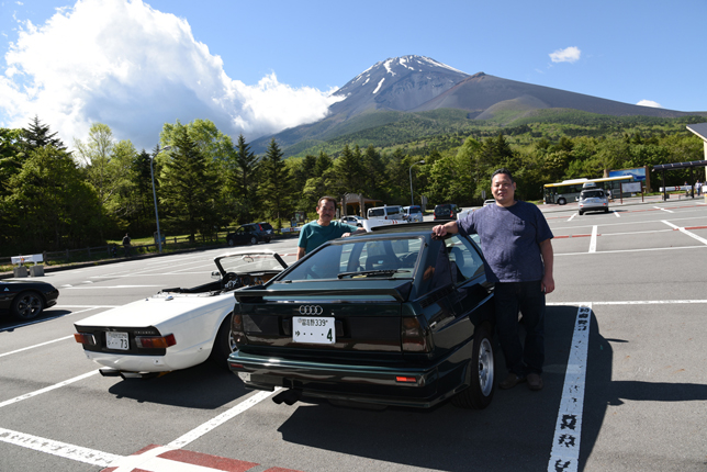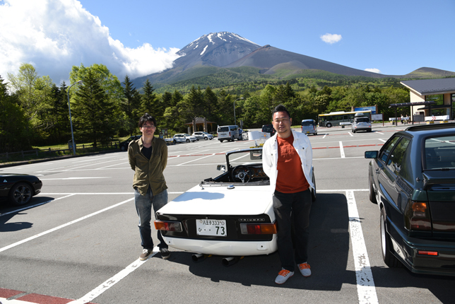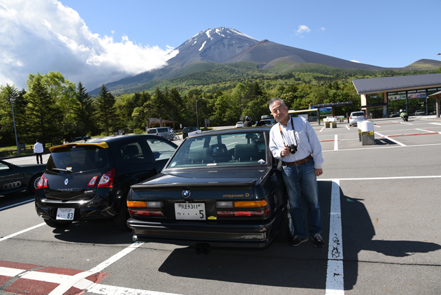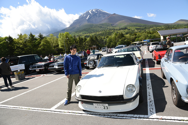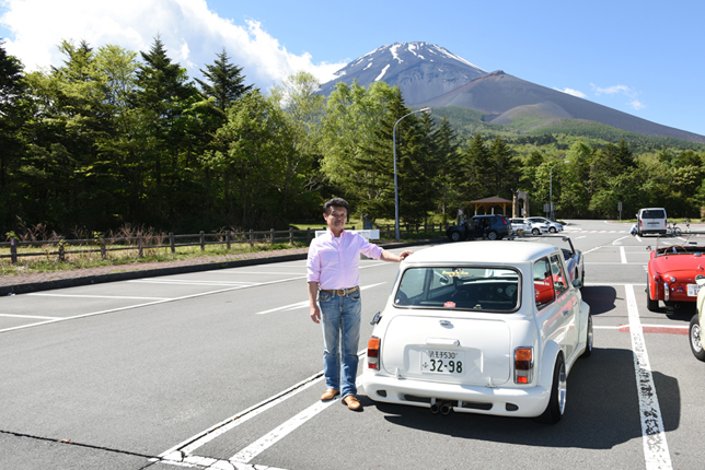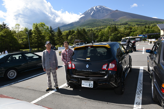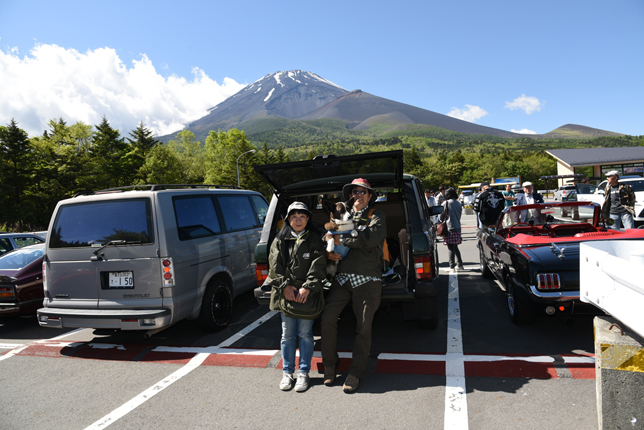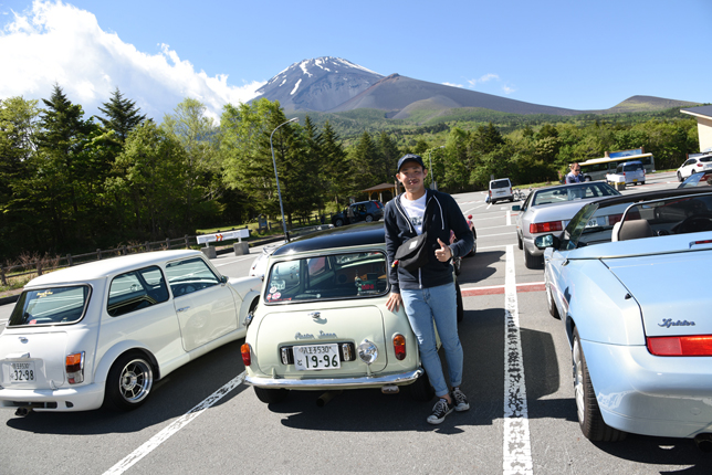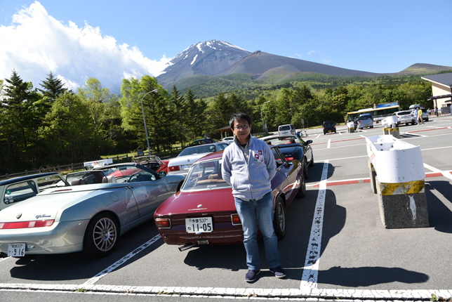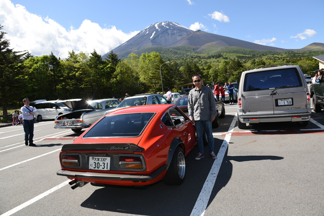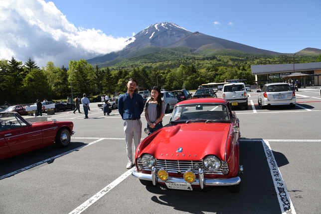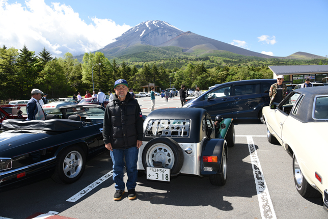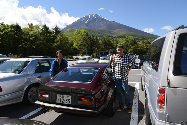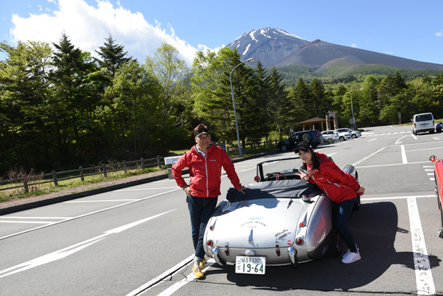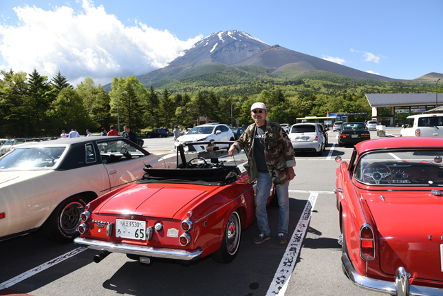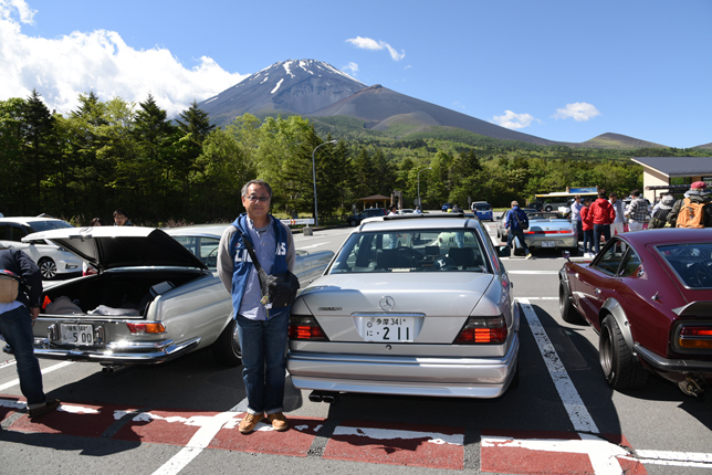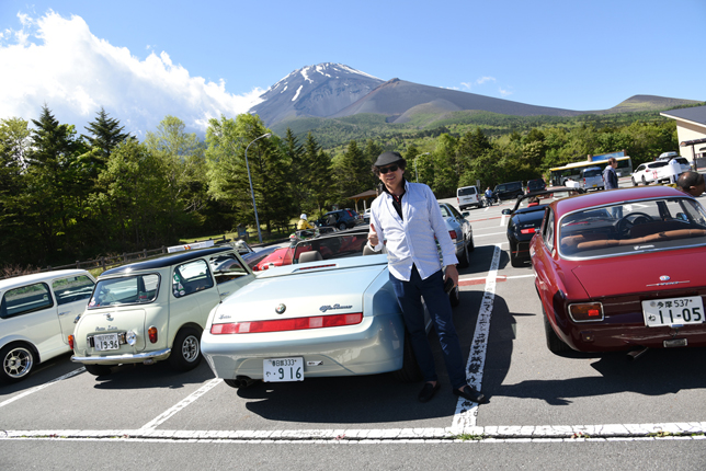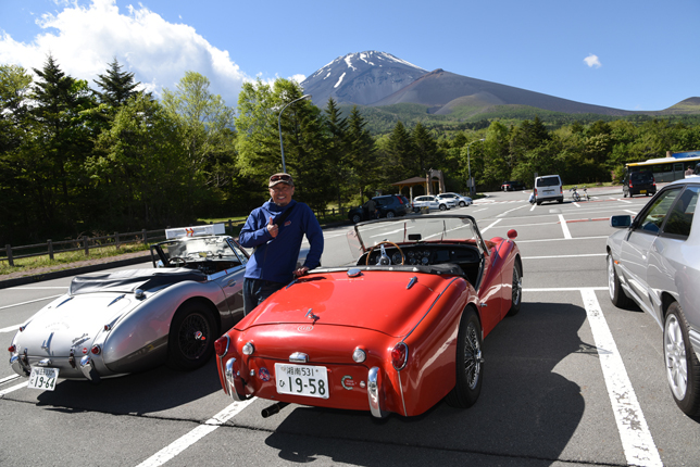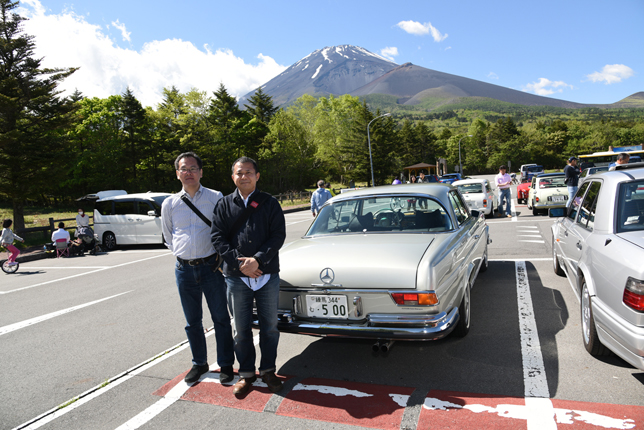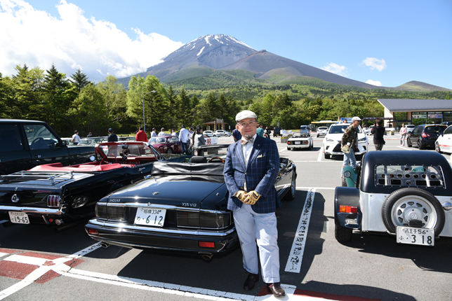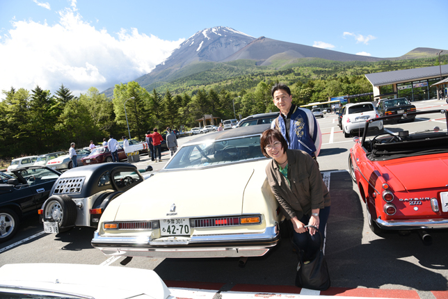 一路、水ヶ塚公園に向かう。この公園の広い駐車場でもオールドファッション達の集団は注目の的。ここでも観光客がお気に入りのノスタリジックカーと記念撮影をしていた。趣味人達は、富士山をバックに参加者全員の記念撮影。ここでも愛車の自慢話に、あちこちに輪が広がり、会話が弾む。