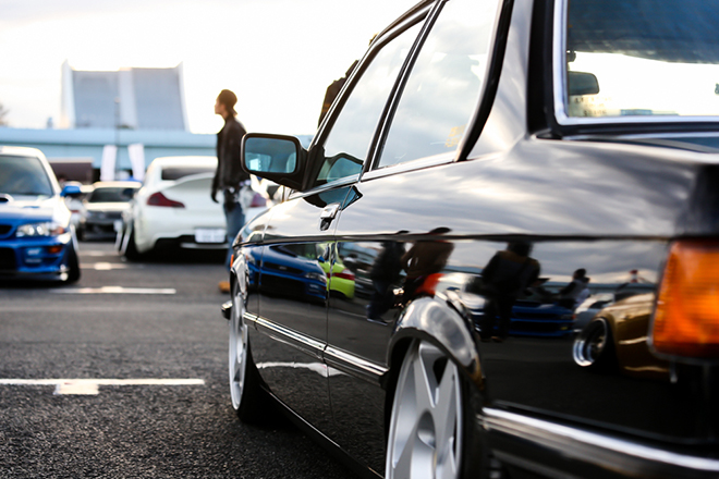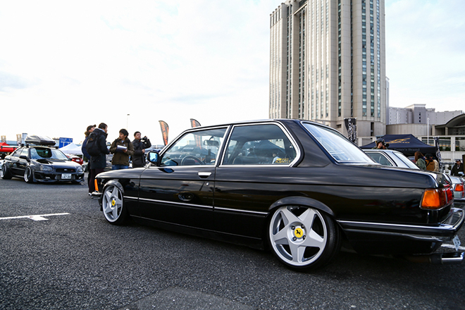 エアサスによってストンと落ちたフォルムは純正のフェンダーがより強調されて、ボディのディテールがよく出ていた。E21に向き合い、よく理解していなければ、こういった纏まったカスタムは出来ないだろう。