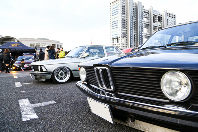 今年のお台場スタンスネーションにはユーロ系も多数のエントリーがあり、中でもBMWは多かった。その中でもE36、E30、を飛び越してE21型が二台並んでいるところに取材班は目がとまった。